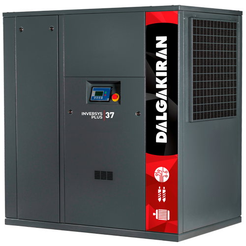 Воздушный винтовой компрессор INVERSYS 37 PLUS, собранный из лучших европейских комплектующих, поддерживает заданные значения давления, что существенно устраняет потери, являющиеся следствием повышения давления сжатого воздуха.
