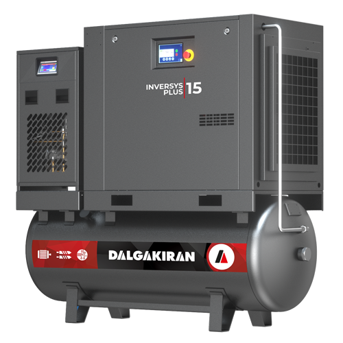 Воздушный винтовой компрессор INVERSYS 15 PLUS — это надежная и экономичная система генерации сжатого воздуха, состоящая из винтового компрессора, воздушного ресивера объемом 500 литров, а также системы подготовки сжатого воздуха на одной платформе.